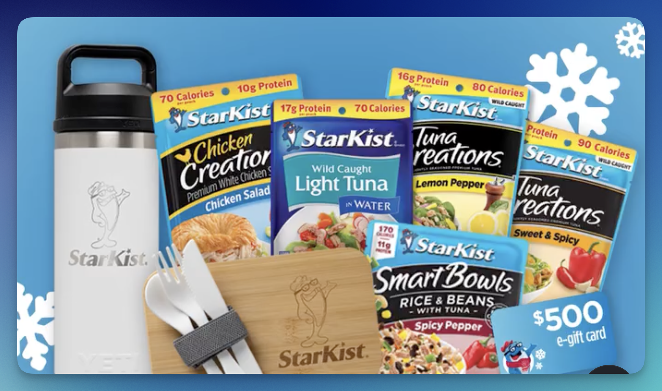Add some cheer to your season with the StarKist Charlie’s “Hack the Holiday” Instagram Sweepstakes! Five winners will each take home a prize package featuring a $500 prepaid gift card, YETI bottle, bento box, and StarKist goodies.