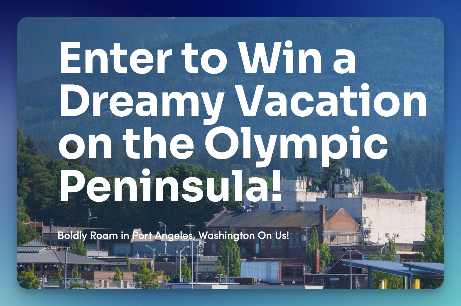 One getaway prize is available in the Visit Port Angeles Dreamy Vacation Giveaway, featuring a 2 night trip for two in beautiful Port Angeles!