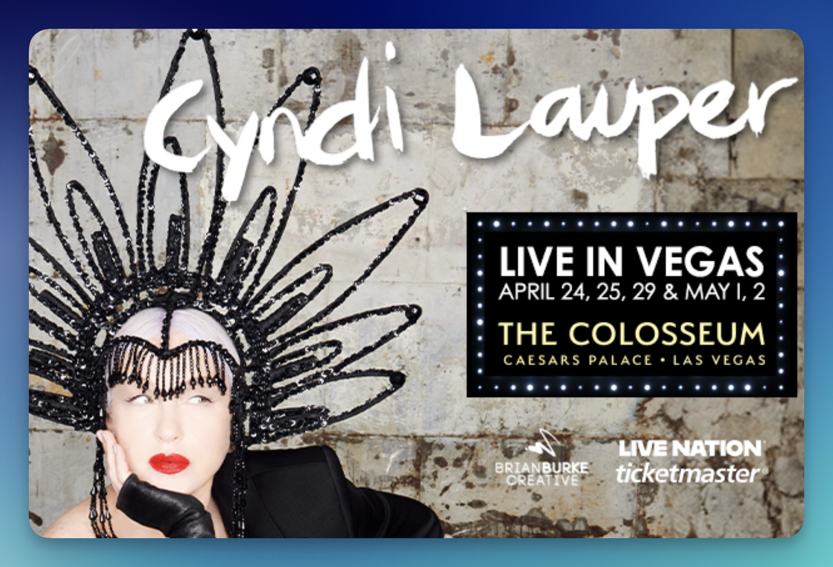 (1) Grand Prize Winner will receive round-trip airfare, a two-night stay at the Flamingo Hotel & Casino, four tickets to see Cyndi Lauper live in Las Vegas on April 24, 2026, a $200 ground transportation gift card, a $300 dinner credit, and an official show poster (approximate retail value $3,000)