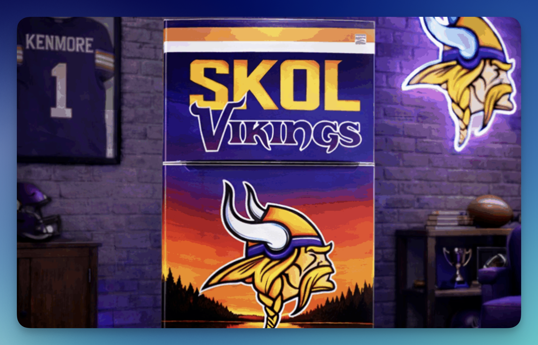 (1) Winner will receive a Kenmore 18.1 cu. ft. Top Freezer Refrigerator featuring a Minnesota Vikings-themed application wrap with an approximate retail value of $999.99 (Kenmore warranty applies to the refrigerator only, not the wrap)