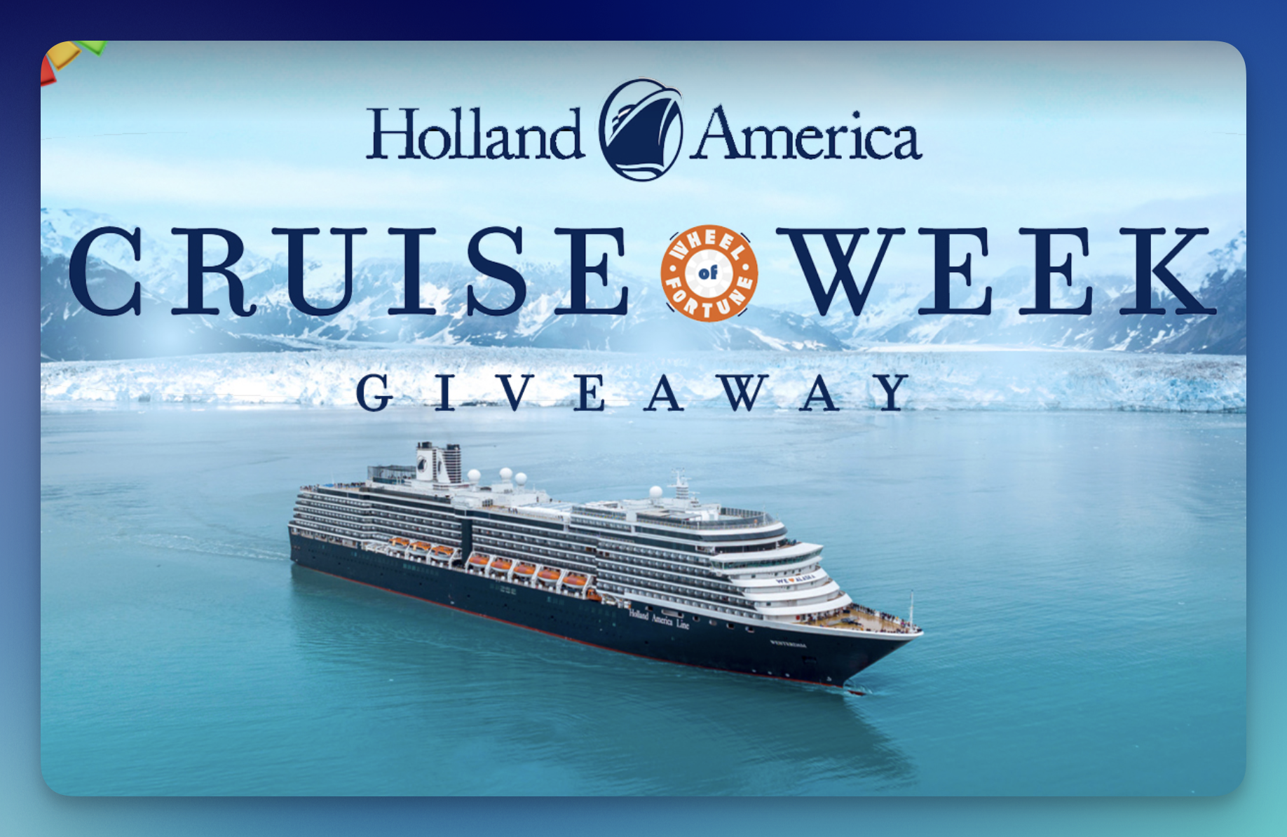 Spin into cruise dreams by entering the Wheel of Fortune “Holland America Cruise” Sweepstakes, featuring 5 total prizes awarded across the week! Feel free to help each other out in the comments section. Good luck!
