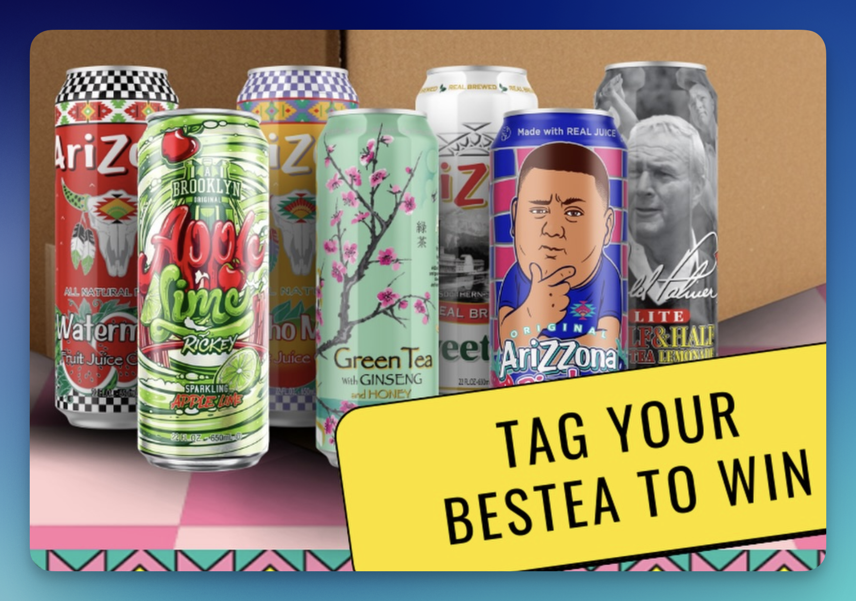 Arizona fans can keep the fridge stocked with the Arizona Iced Tea “1-Year Supply” Instagram Giveaway, featuring 1 total prize of iced tea for an entire year!