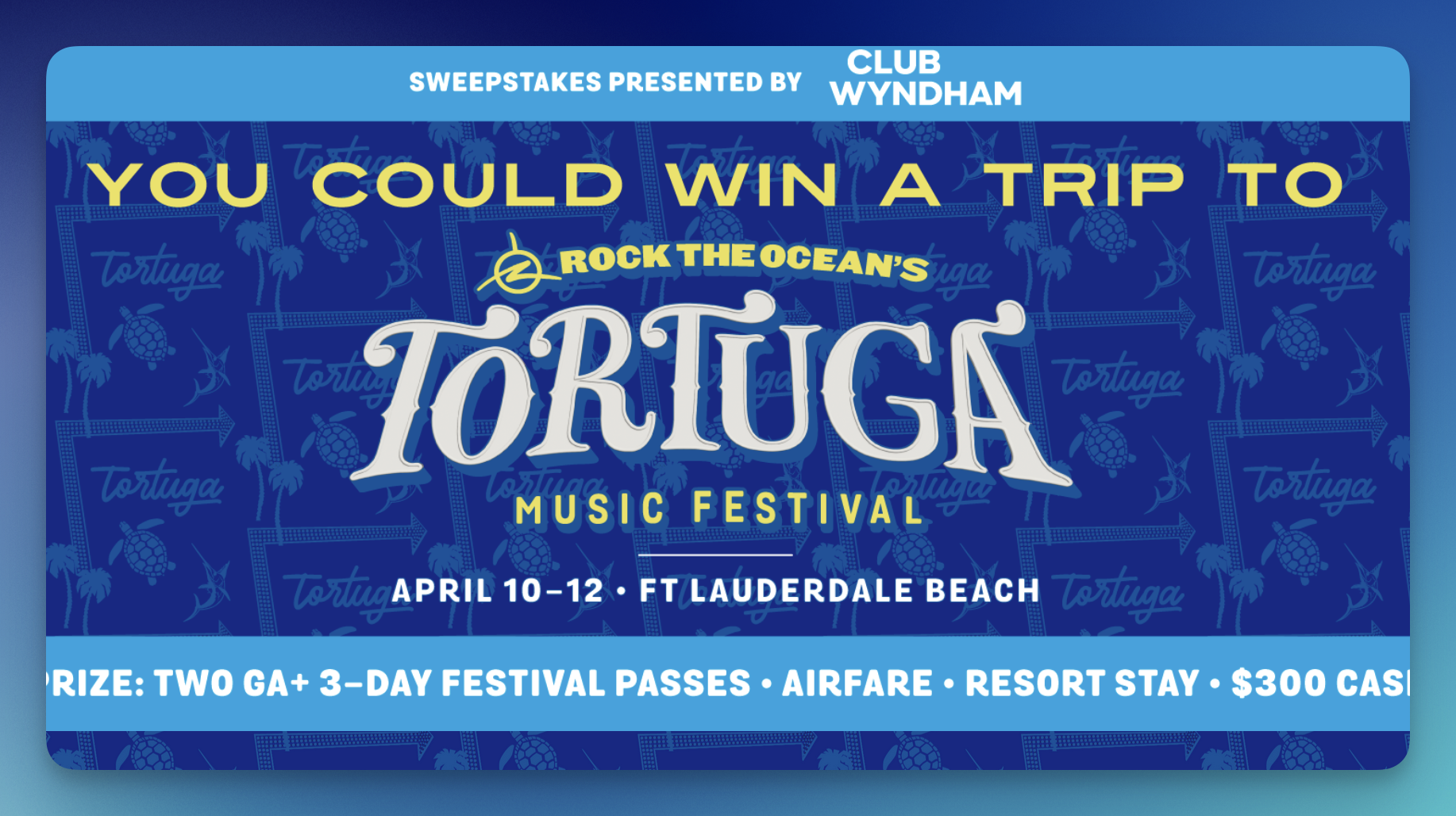Beach vibes and live music?! The Club Wyndham Florida Festival Flyaway Sweepstakes is sending 1 lucky winner to Tortuga Music Festival in Ft. Lauderdale!