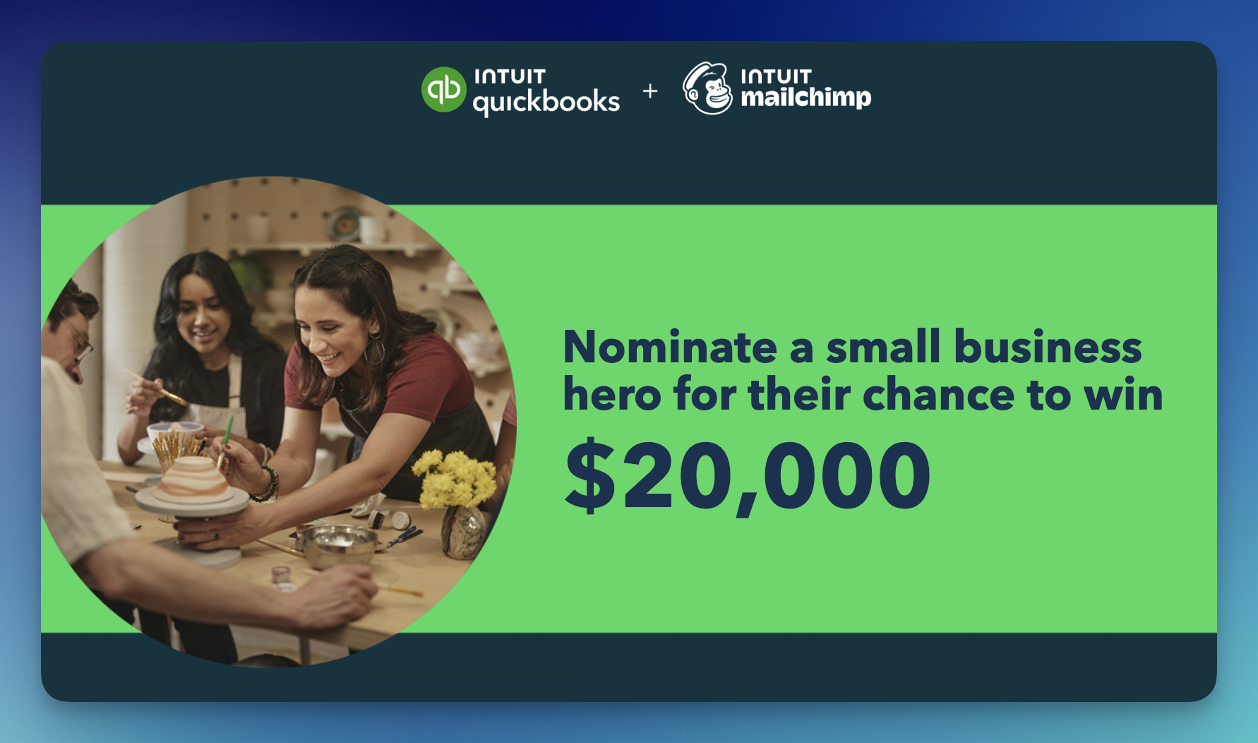 Celebrate small business wins with the Intuit Small Business Hero Contest, featuring 12 total prizes designed to help businesses grow in a big way!
