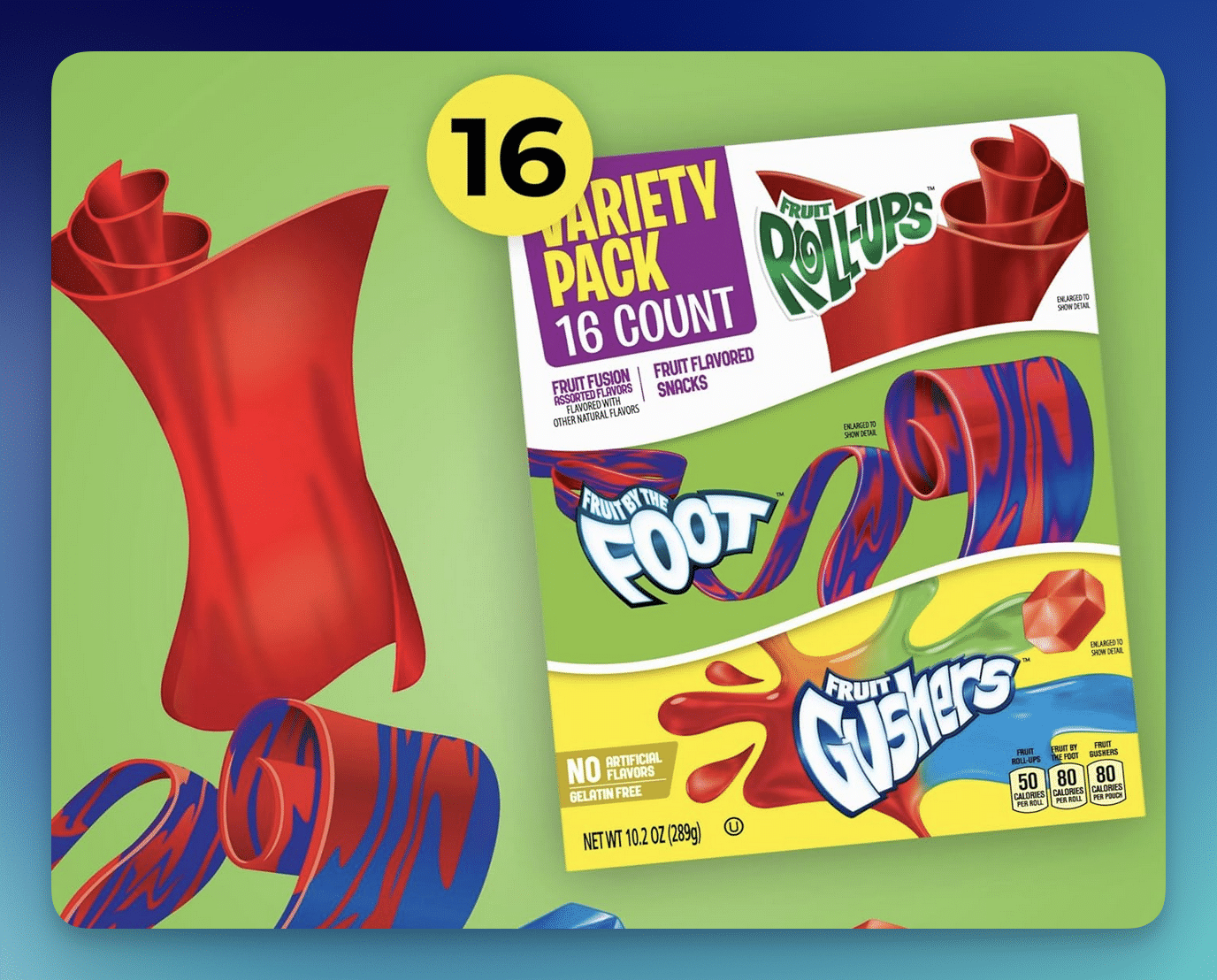 Amazon has the Fruit Roll-Ups, Fruit by the Foot & Gushers Fruit Flavored Snacks 16-Count Variety Pack on sale for $5.68 — opt into Subscribe & Save to bring it down even more!