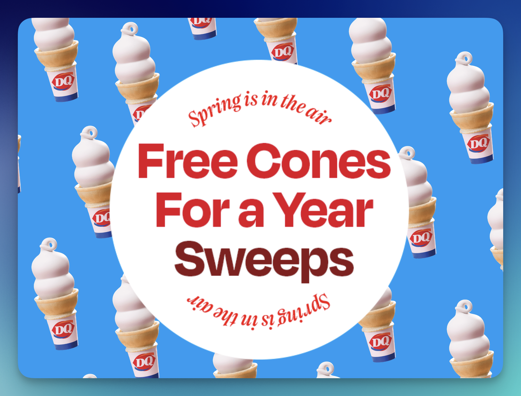 - Grand Prize (1): “Free Cones for a Year” awarded as $500 in DQ gift cards, defined as 2 small vanilla cones per week for 52 weeks, ARV $500.00