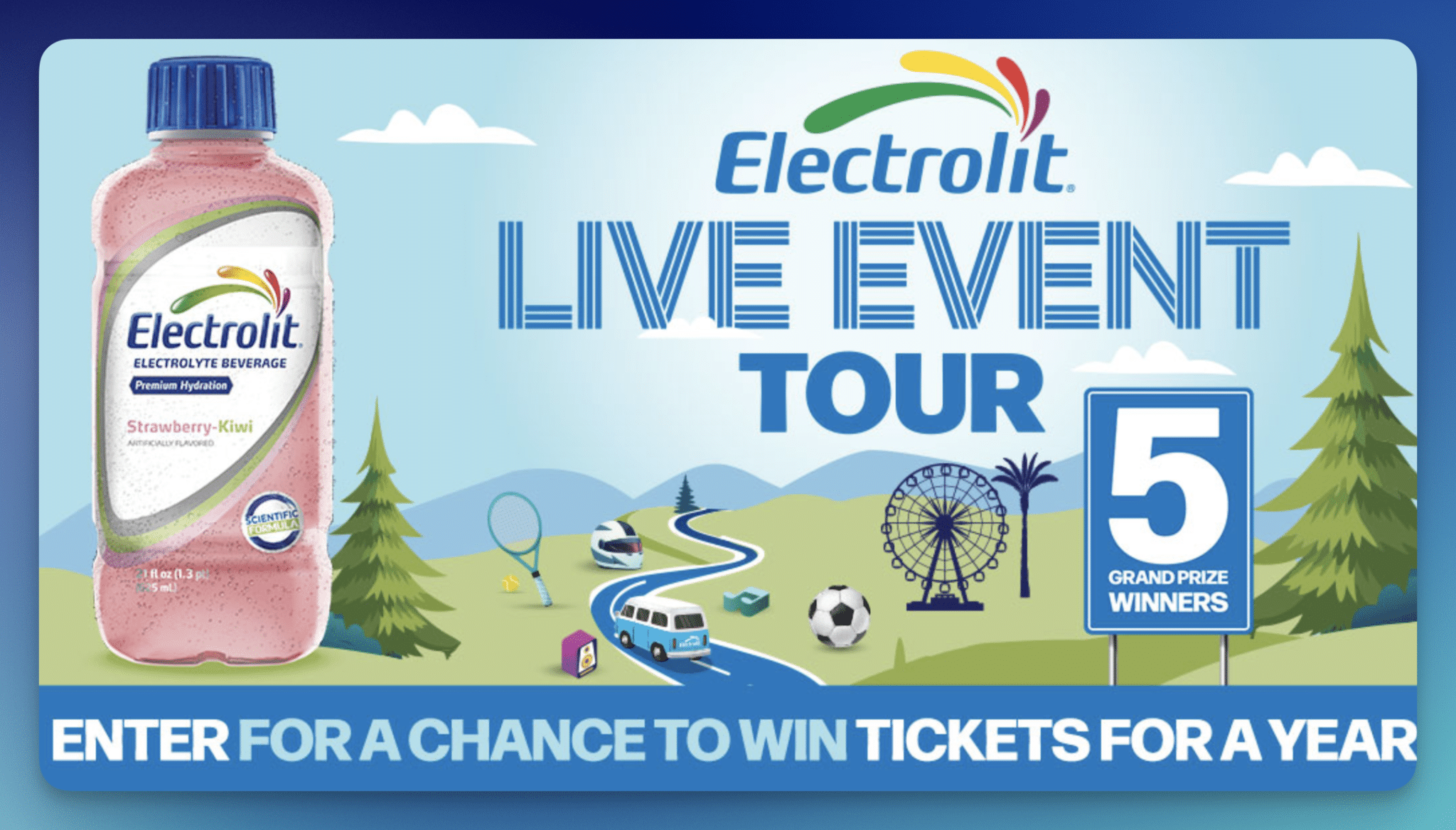 Score big on live events with the Electrolit “Summer Tour” Instant Win Game, featuring 4,005 total prizes including Ticketmaster gift cards and instant win codes!