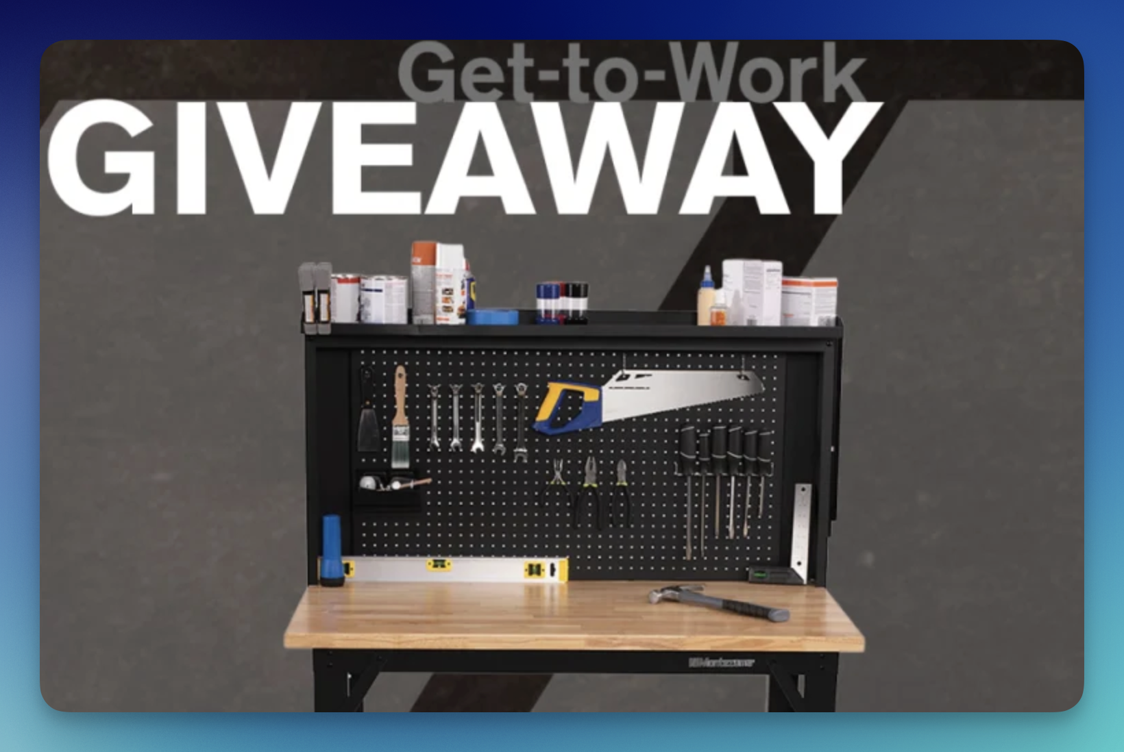 Workshop upgrades are on the way with the Montezuma “Get to Work” Sweepstakes, giving 1 winner a 4 ft. Adjustable Height Steel Workbench with Pegboard Back Wall!
