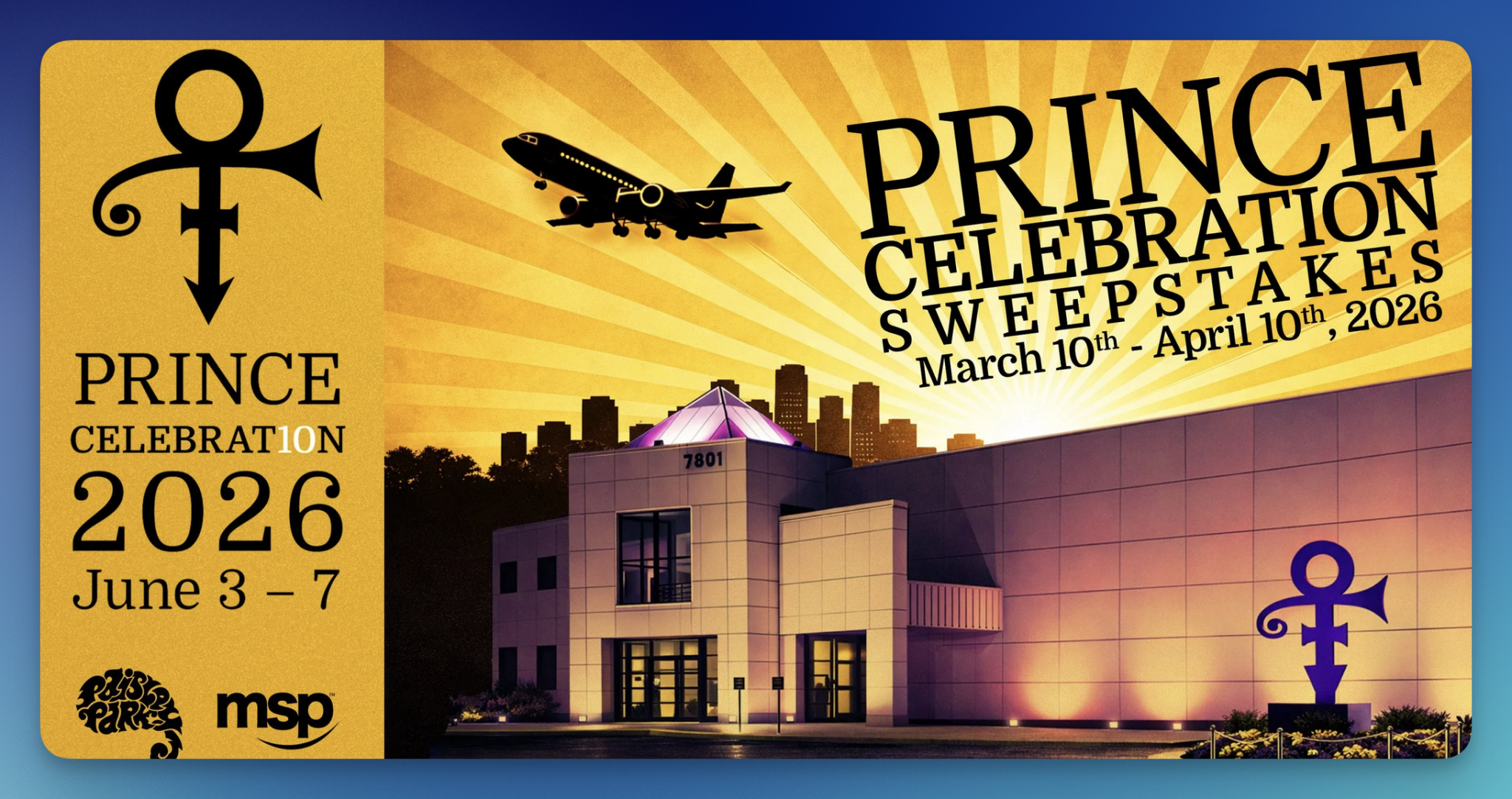 Prince fans will not want to miss the Paisley Park “Prince Celebration” Sweepstakes, giving 1 winner four VIP tickets to the 2026 Prince Celebration: 10 Year Celebration of Life plus an incredible collection of Prince-branded merchandise!