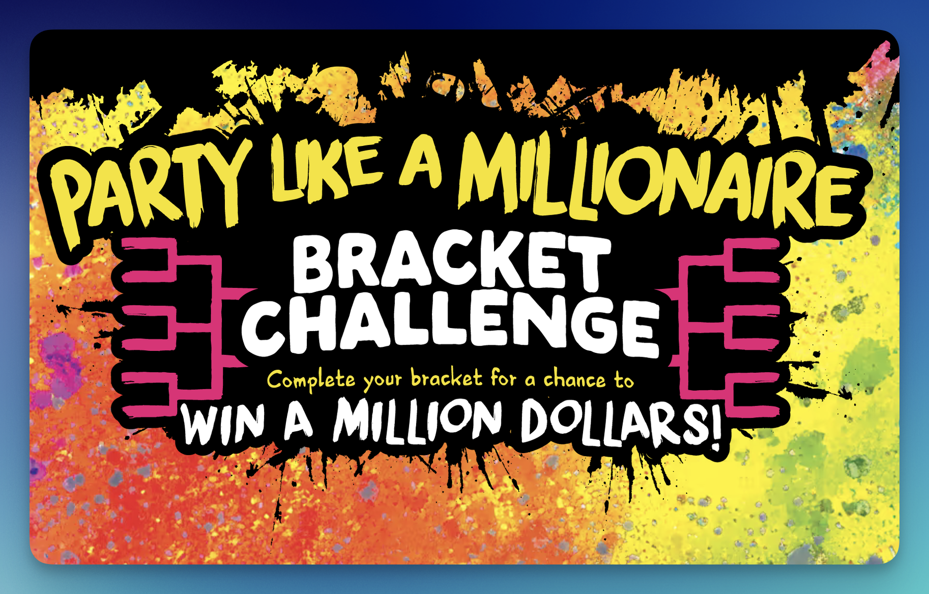Fill out your bracket for a shot at $1,000,000 with the PartyBomb “College Basketball Bracket Challenge” Giveaway, featuring 6 total prizes including cash and swag!
