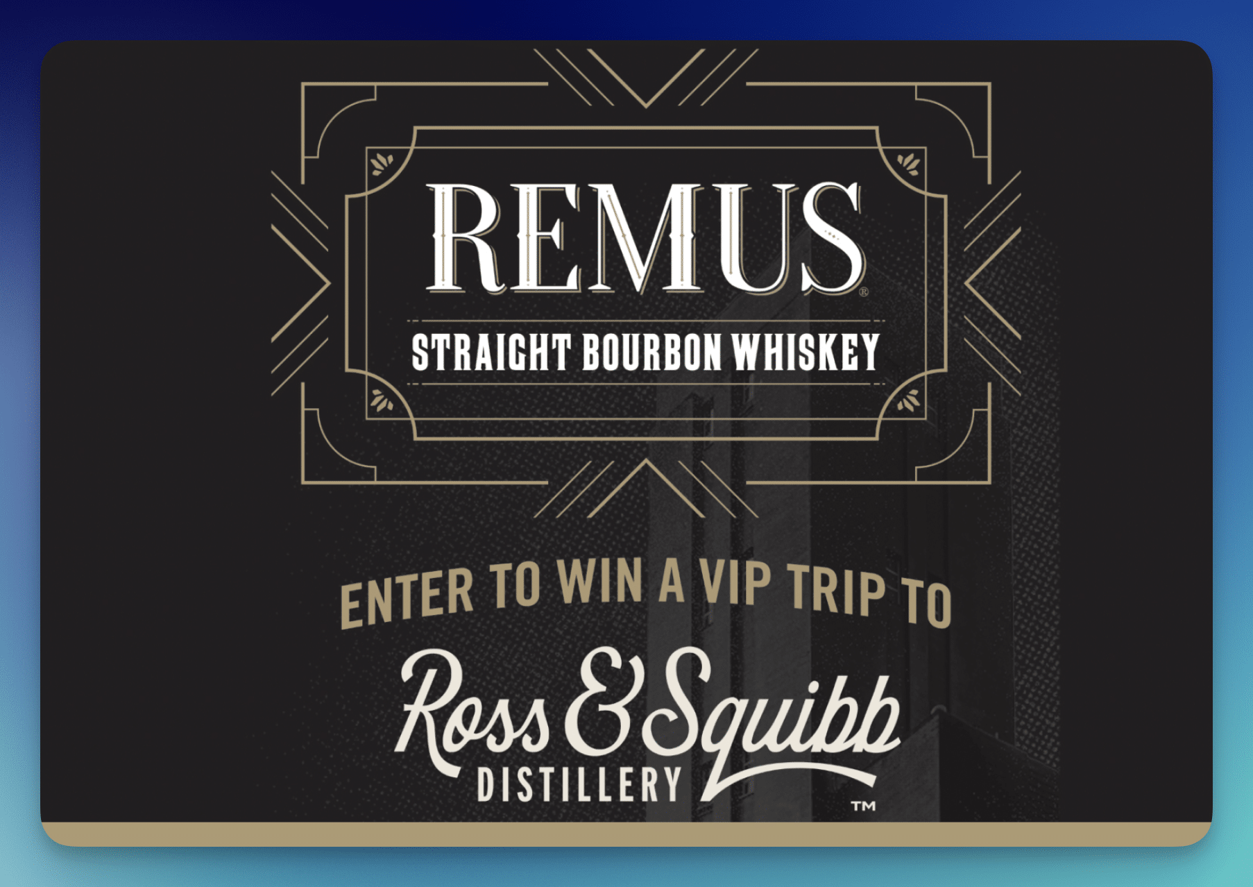 - 4 winners (1 per entry period) will each receive a trip for themselves and 1 guest to Ross & Squibb Distillery in Lawrenceburg, IN, including round-trip coach airfare, 2 nights hotel accommodations (double occupancy), a Distillery VIP Tour, and a $500 eCheck for rental car or meals (ARV up to $2,300 each)
