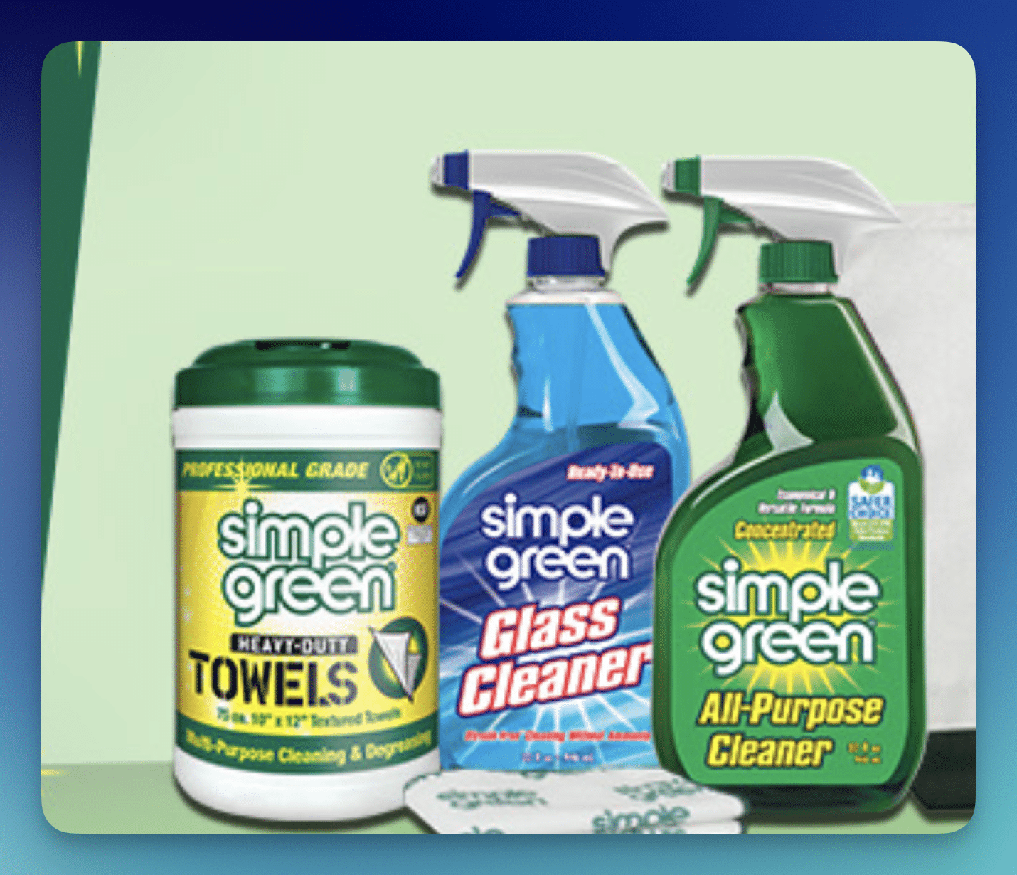 - 1 Grand Prize winner will receive a 32oz Simple Green All-Purpose Cleaner Original Scent, 32oz Simple Green Ready-to-Use Glass Cleaner, 20oz Simple Green Heavy-Duty BBQ & Grill Cleaner Aerosol, a canister of Professional Grade Heavy-Duty Towels, a 32oz Simple Green Dilution Bottle, a Simple Green branded microfiber towel, and a Simple Green branded tote bag (ARV $460)