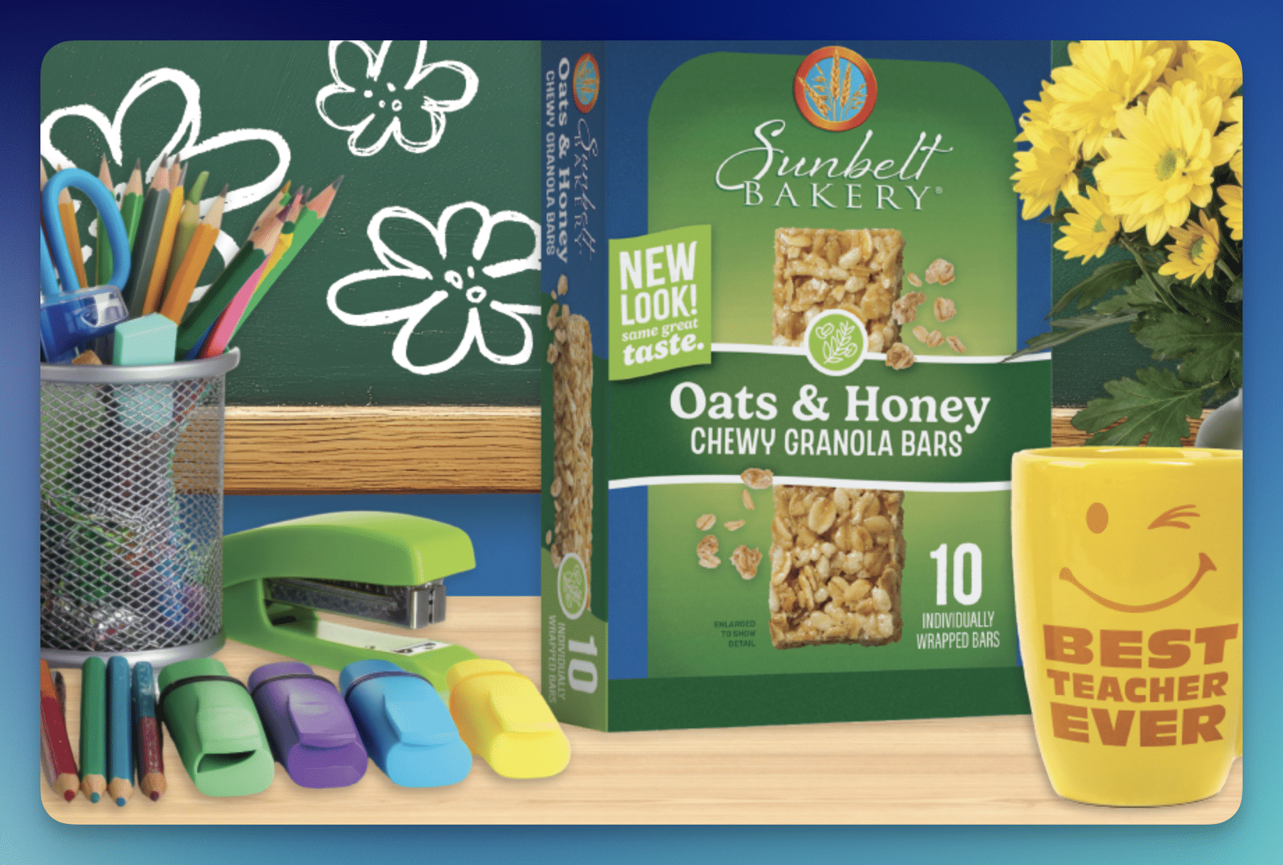 - 20 winners will each receive a Sunbelt Bakery prize pack including 2 cartons of Chocolate Chip Chewy Granola Bars, 2 cartons of Oats & Honey Chewy Granola Bars, and 1 carton of Fudge-Dipped Chocolate Chip Chewy Granola Bars (ARV $17.45), plus a $500 classroom donation redeemable through AdoptAClassroom.org