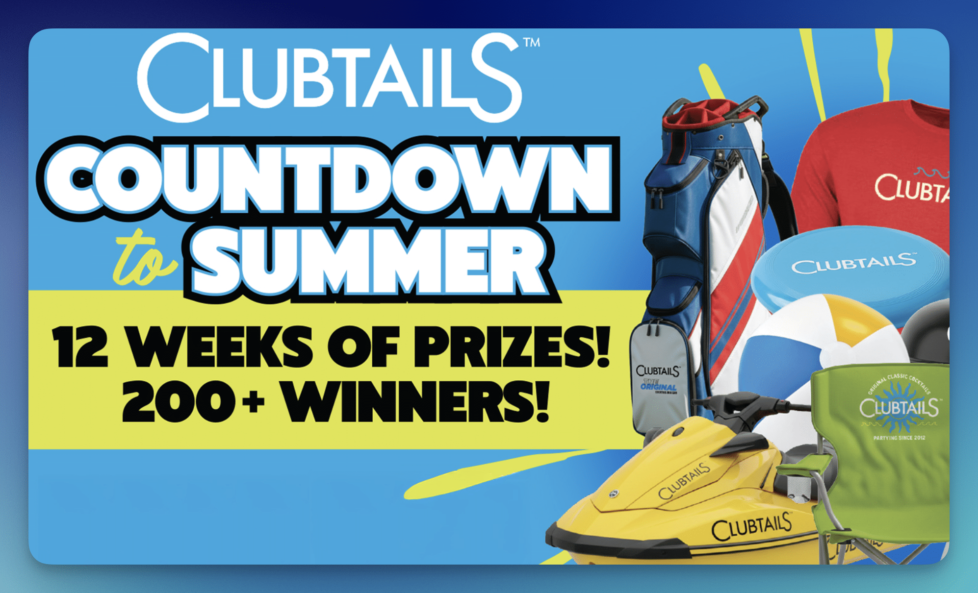 Summer is coming in hot with the Clubtails “Countdown to Summer” Sweepstakes, giving away 238 total prizes including a jet ski and tons of summer gear!