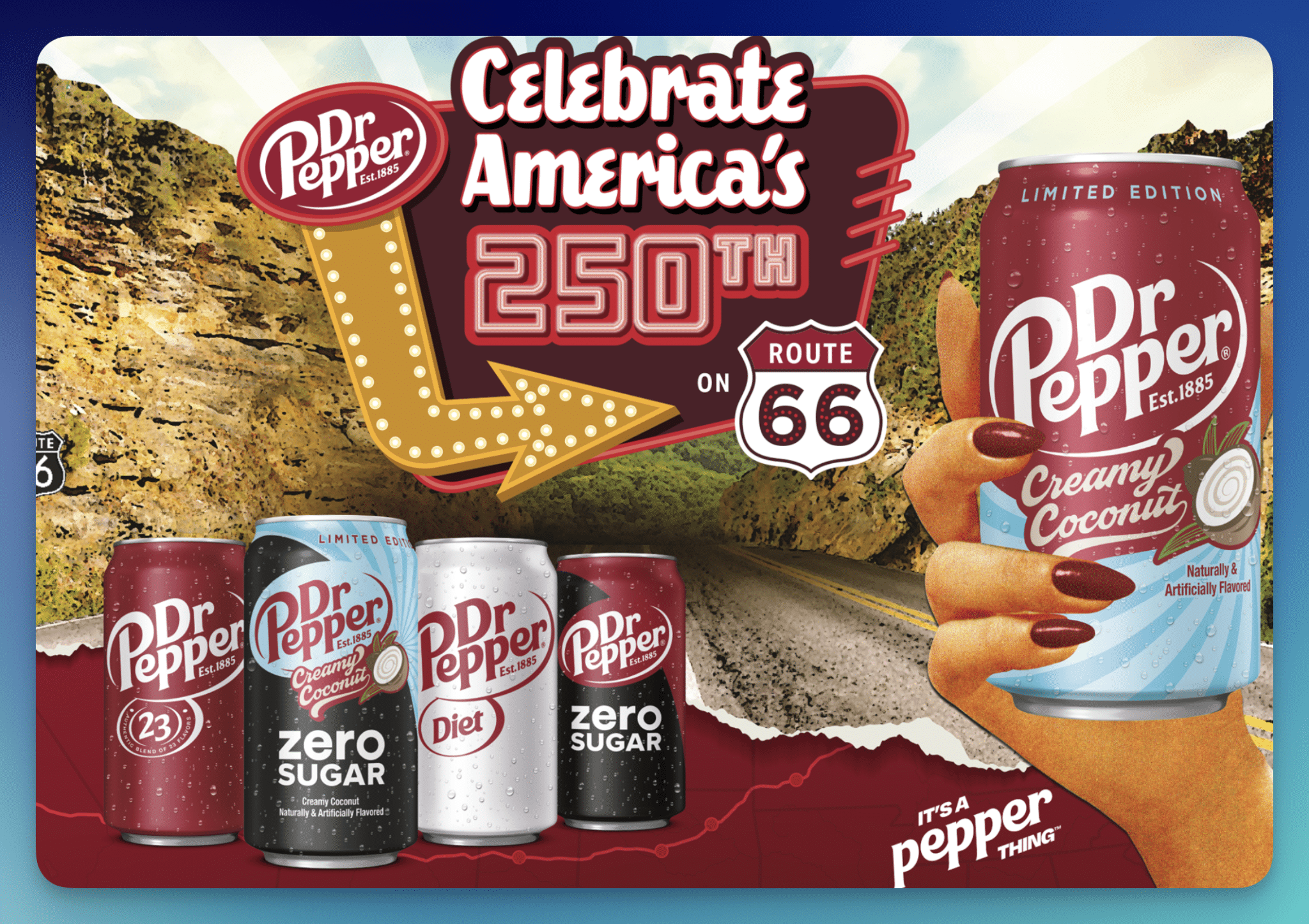 The open road is calling with the Dr Pepper “Route 66” Sweepstakes, giving away 1 winner a brand new Ford Bronco!
