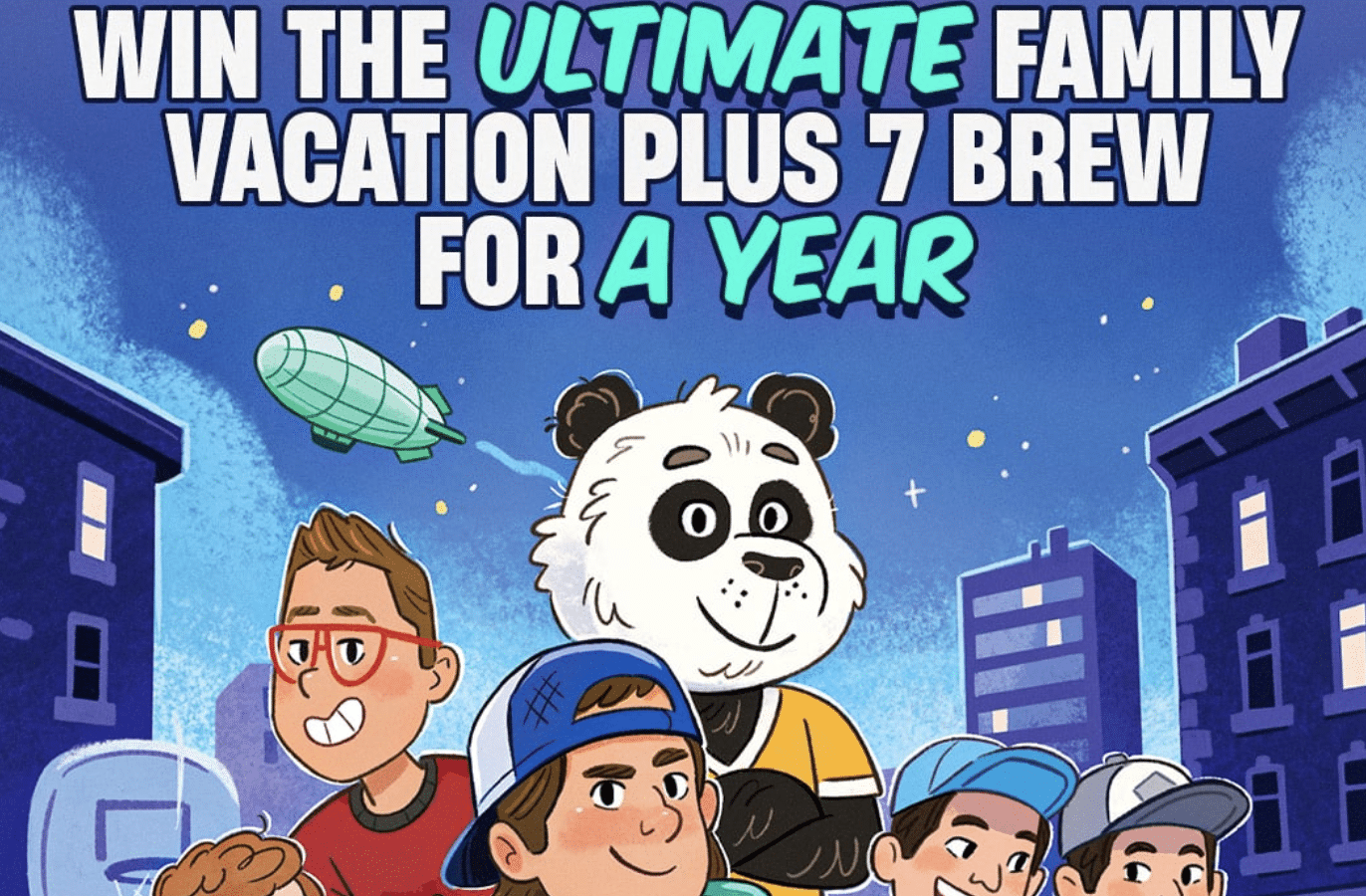 - (1) winner will receive a trip for four to a U.S. destination of their choice including roundtrip airfare, hotel accommodations, travel expenses within budget, a year supply of 7 Brew, and a 7 Brew swag kit for all four travelers, ARV $12,000
