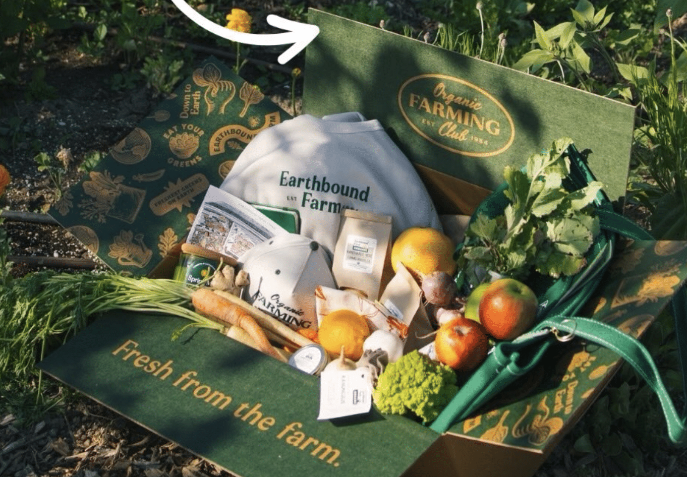 - (1) winner will receive an Earthbound Farm box including an organic farming hat, cozy sweater, keychain, notebook, reusable grocery tote, farm stand postcard and tea towel, a Limited Release Spring Mix candle, and 10 product coupons