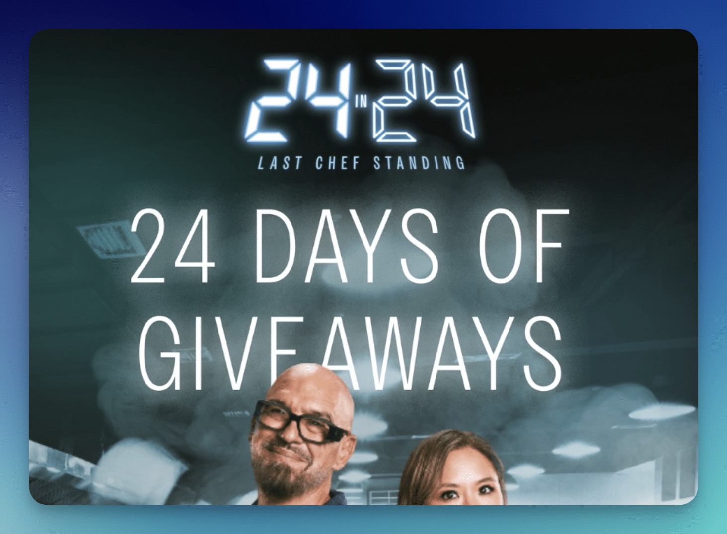 Note: Look for the daily giveaway post on Food Network’s Instagram page featuring “24 Days of Giveaways” in the post image. Enter by following @FoodNetwork and leaving a comment on each daily post.