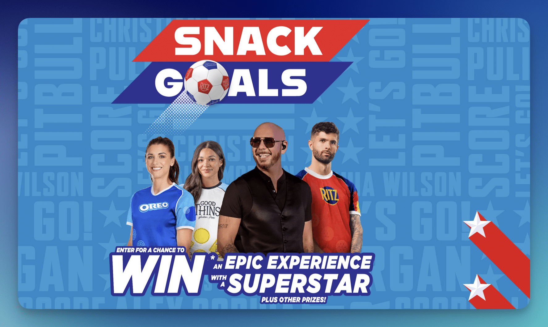 Score big this season with the Nabisco “Score Snack Goals” Instant Win Game, giving away 334 total prizes including celebrity experiences and instant win rewards!