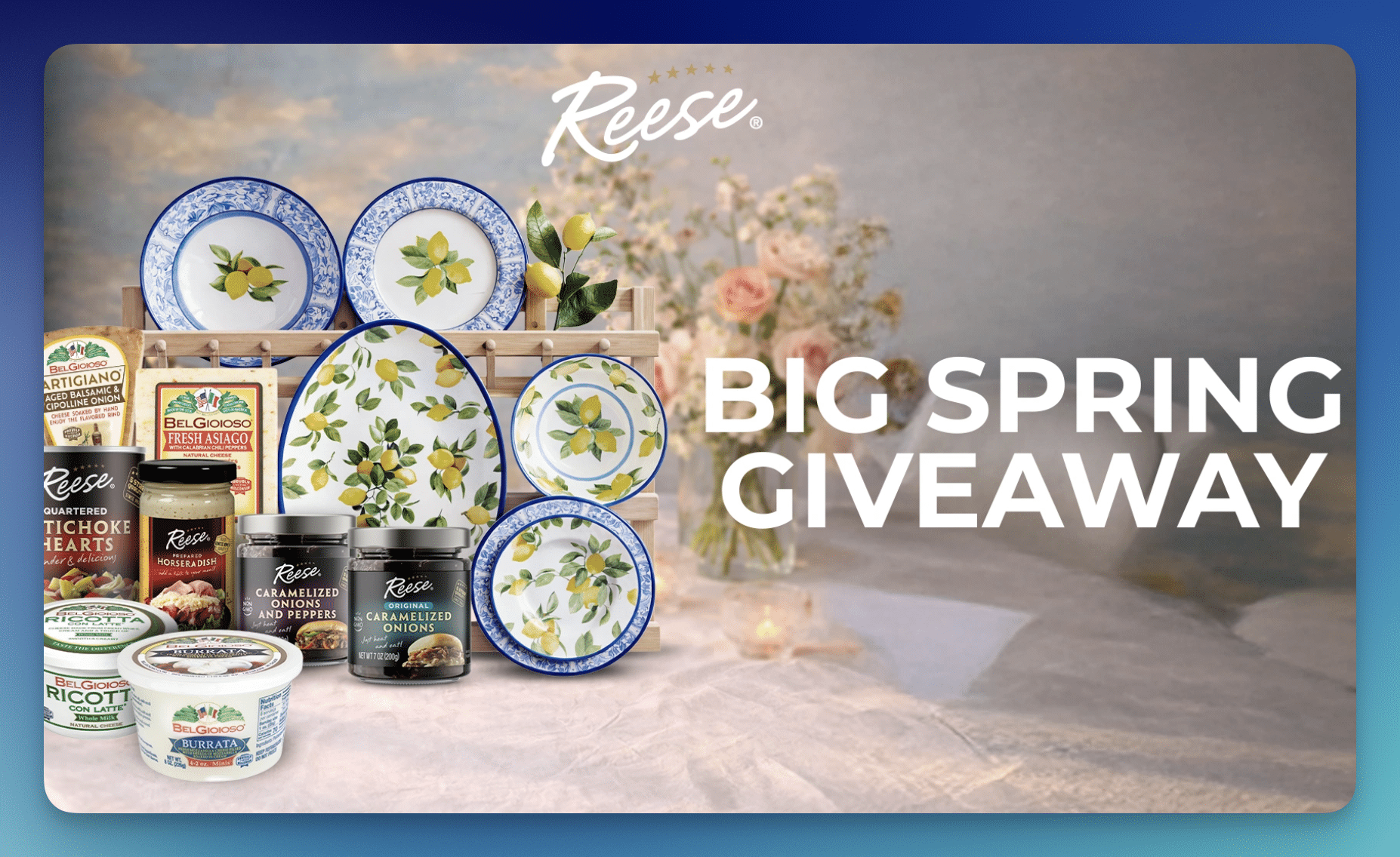 Stock your pantry and set a gorgeous spring table with the Reese “Big Spring” Sweepstakes, offering 1 winner a delightful food and entertaining prize bundle!