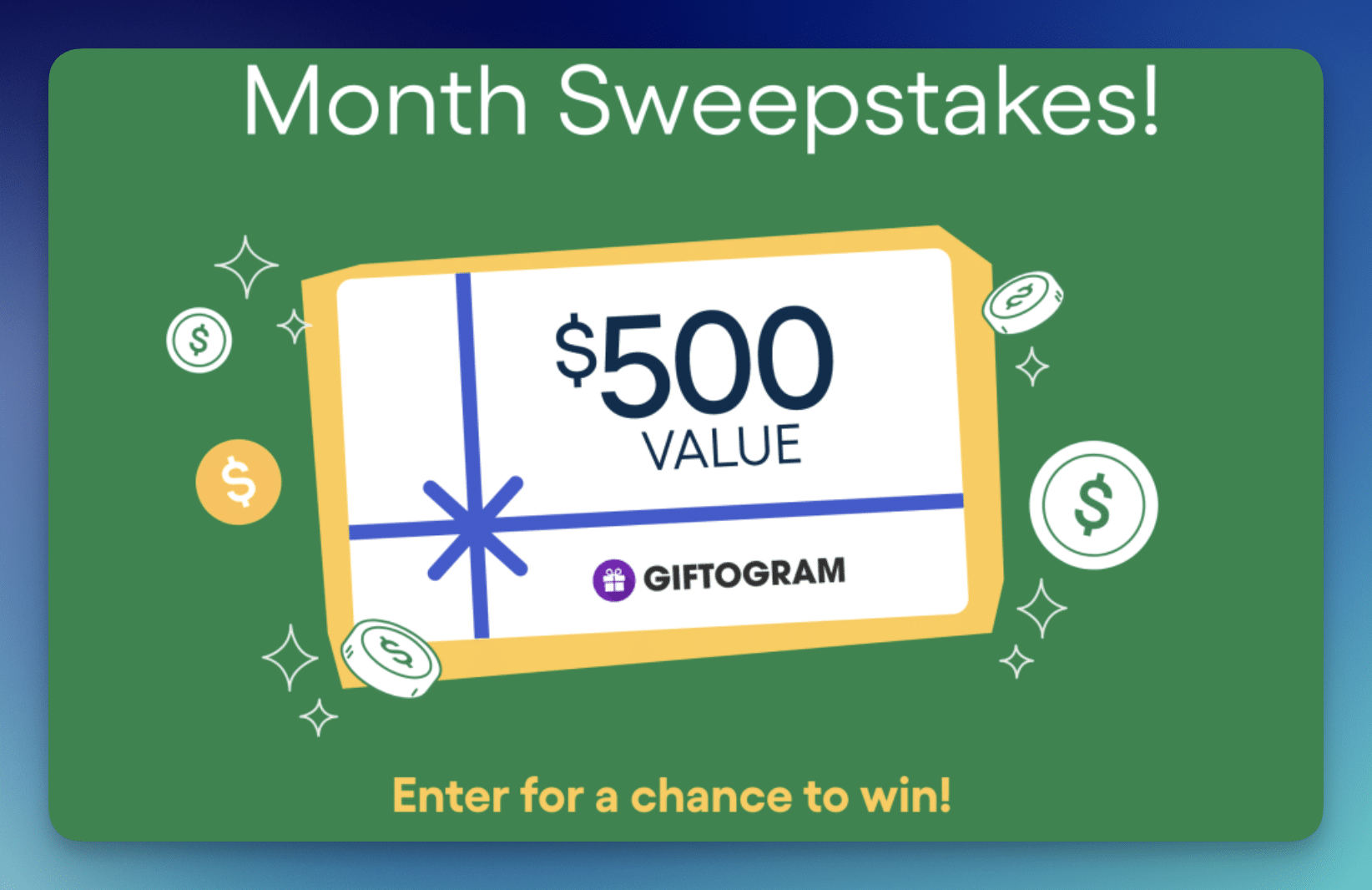 - 3 winners will each receive a $500 Giftogram gift card, ARV $500 each, Total ARV $1,500