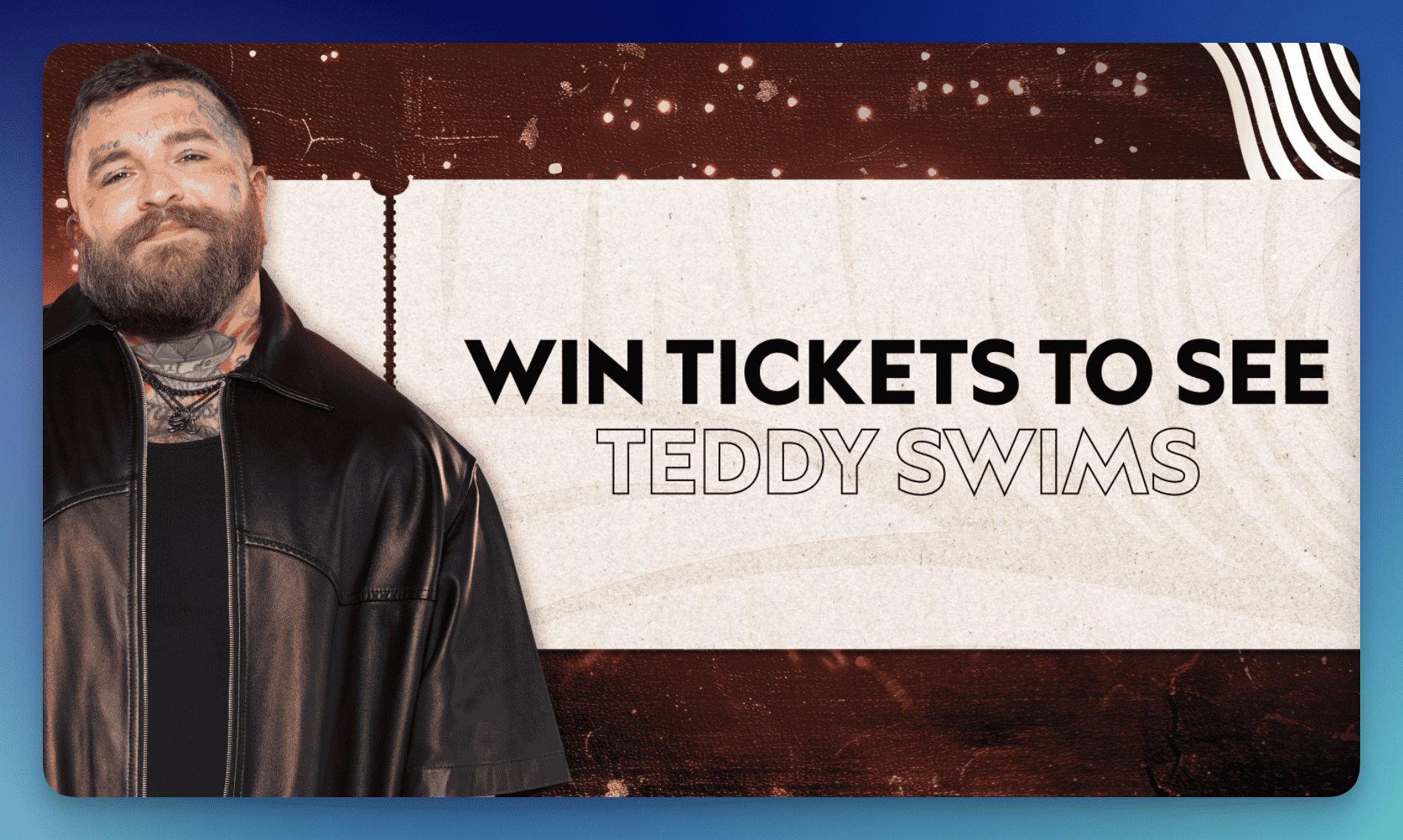 - First Prize: (6) Winners will each receive tickets to a Teddy Swims concert, roundtrip air travel, hotel accommodations, and more, ARV up to $3,119 each; Total ARV: $102,972