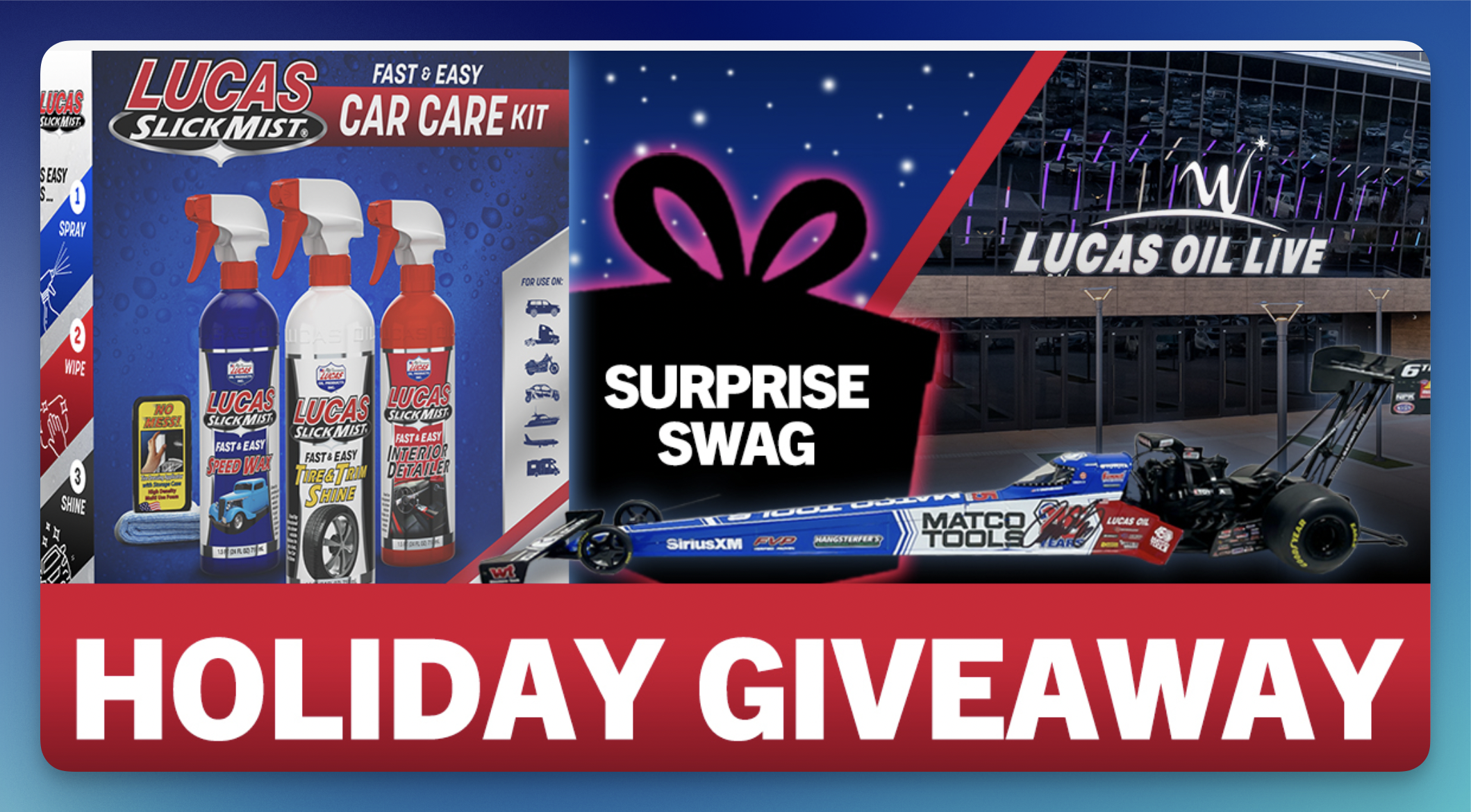 Experience the thrill with the Lucas Oil Holiday Sweepstakes, where adventure and auto care prizes await! PRIZES: Grand Prize: Lucas… Read more
